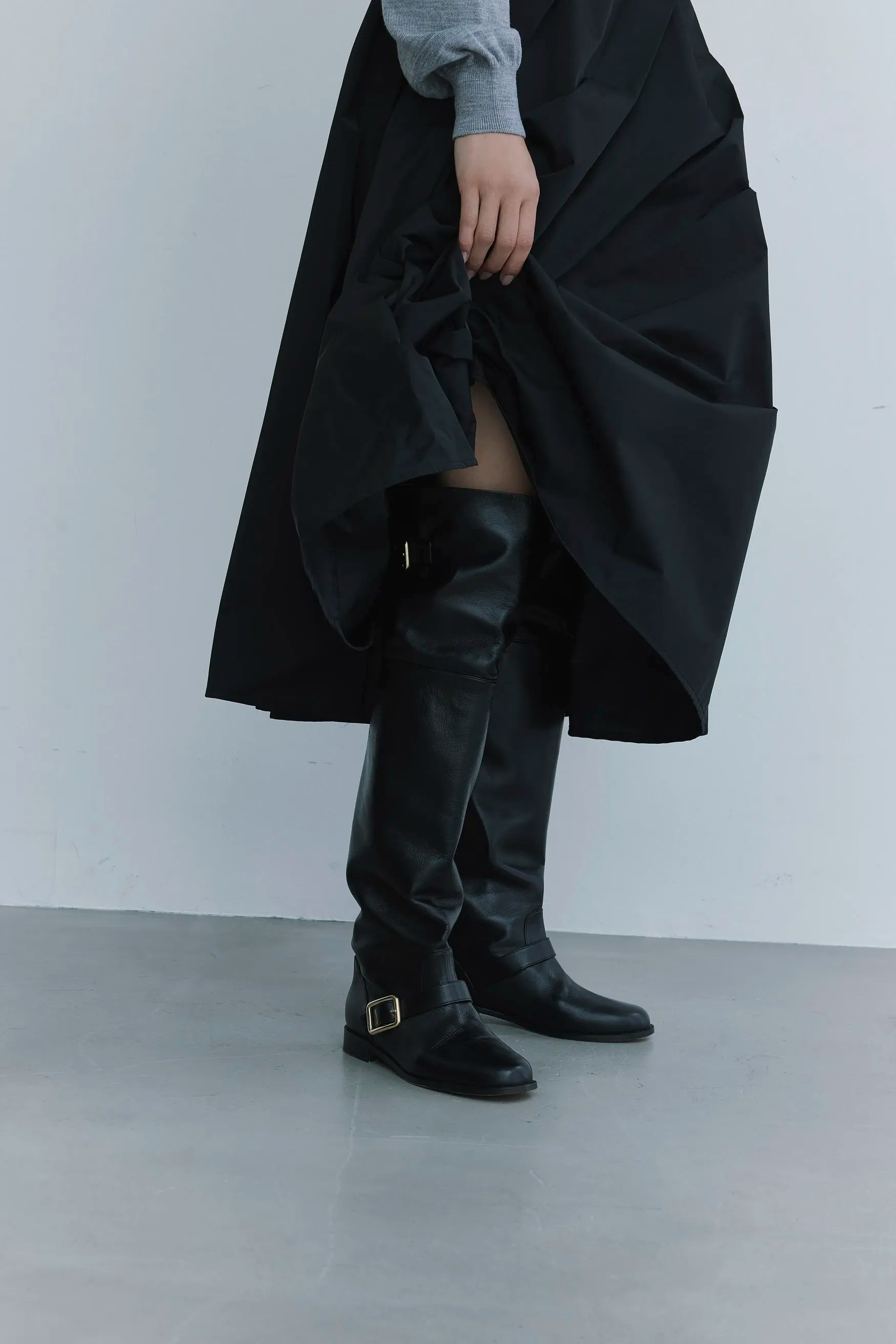 黒のミディスカートは、