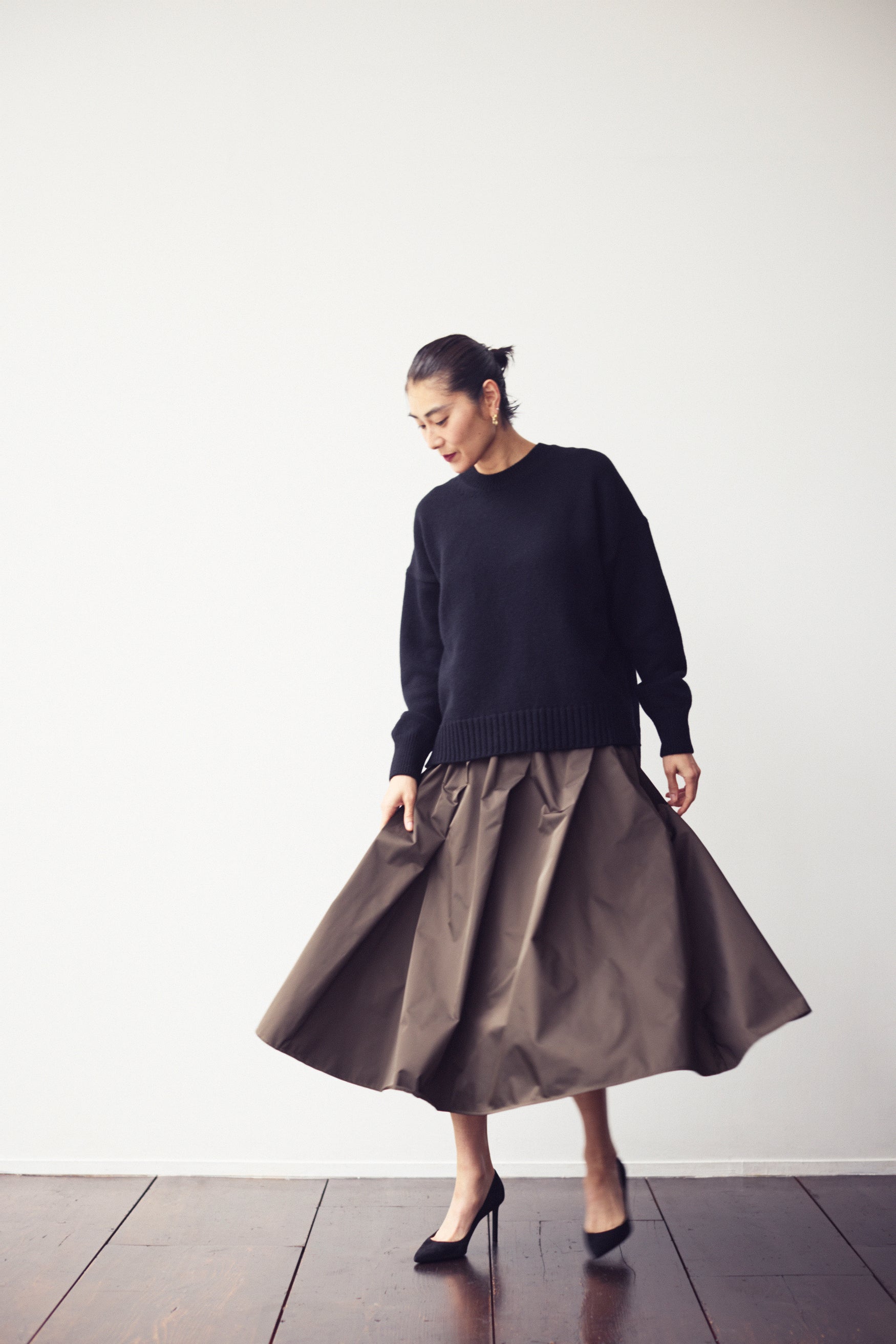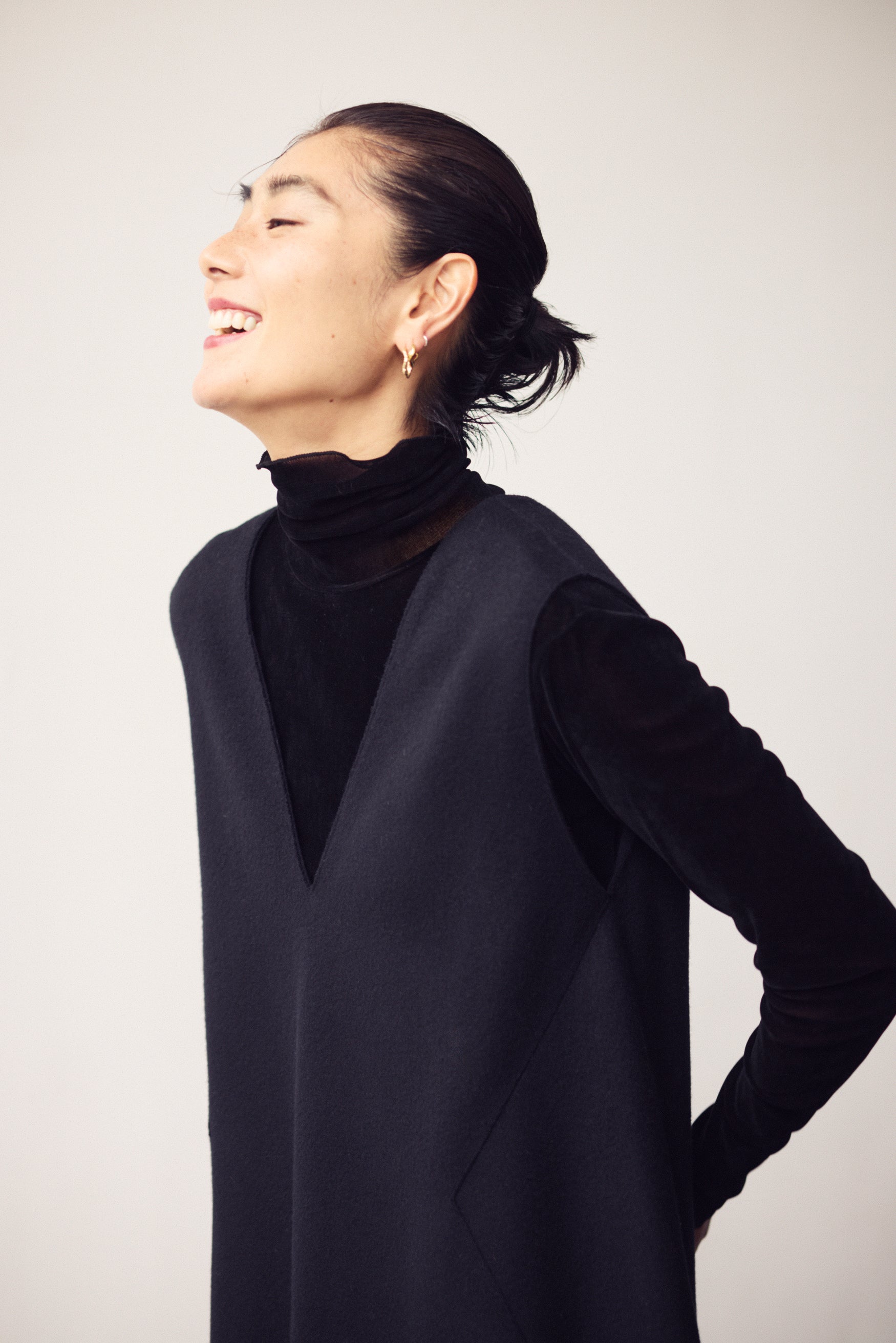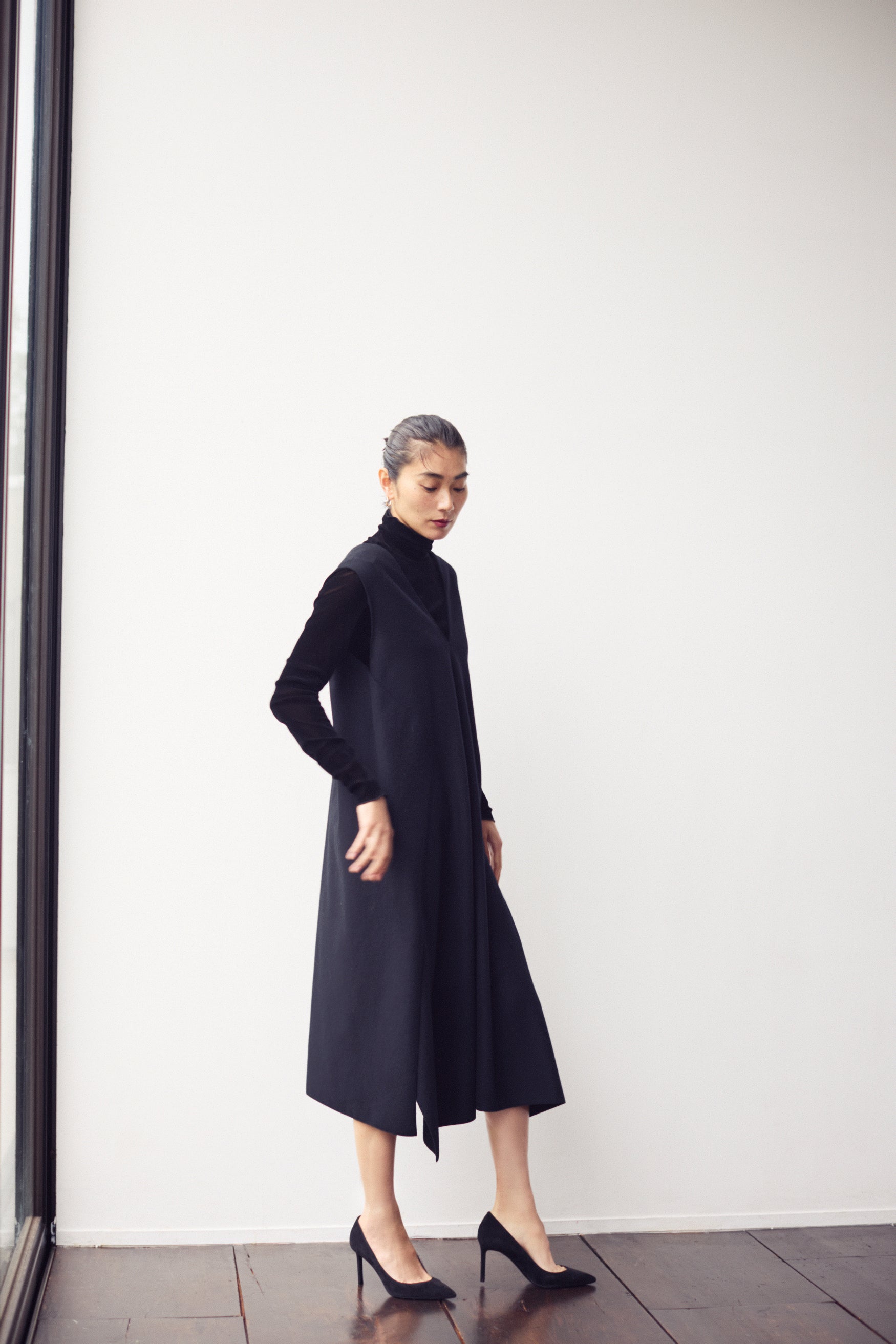 2回目になる、「NO.b」のコレクション。Naokoの“N“とOkusaの“O”、そして“b”は、black。そう、今年は黒のラインナップです。個人的な話で恐縮ですが、私は黒がずっと苦手でした。強く個性的で、ずっと似合わないと思っていたんです。ただし、ある時、素材によってキャラクターを変える、とても饒舌な色だと分かってから、1番好きな色になりました。ウールの天真爛漫な黒、シルクのミステリアスな黒、ジャージーの自由な黒。様々な黒を、ぜひご覧ください。もちろん! 黒に似合う色、黒の着こなしの次の日に着たい色も揃っています。