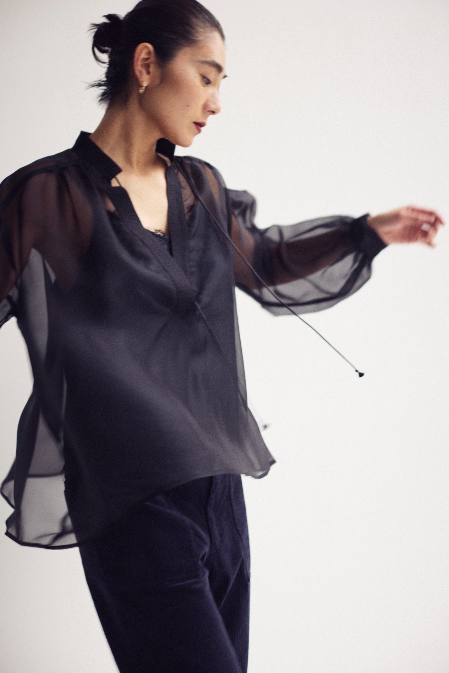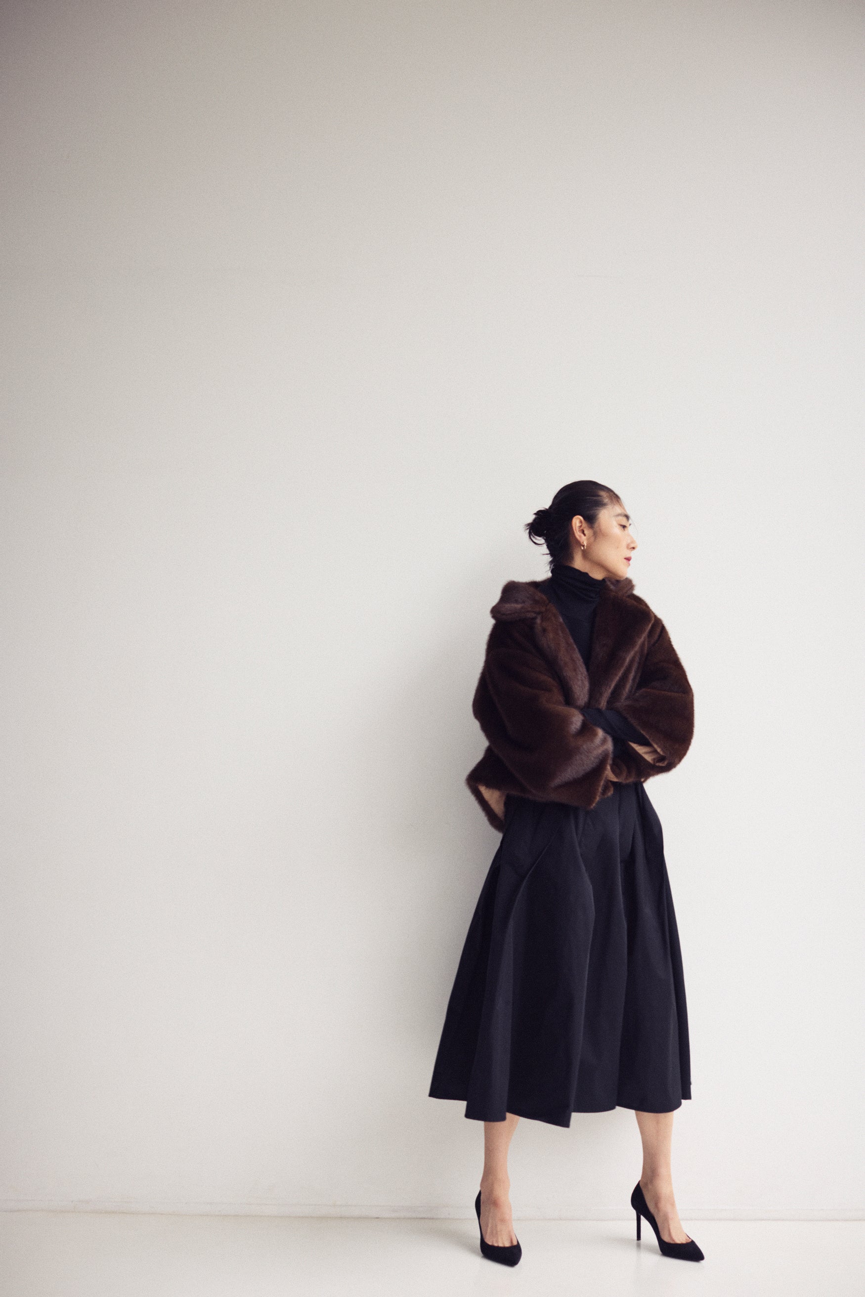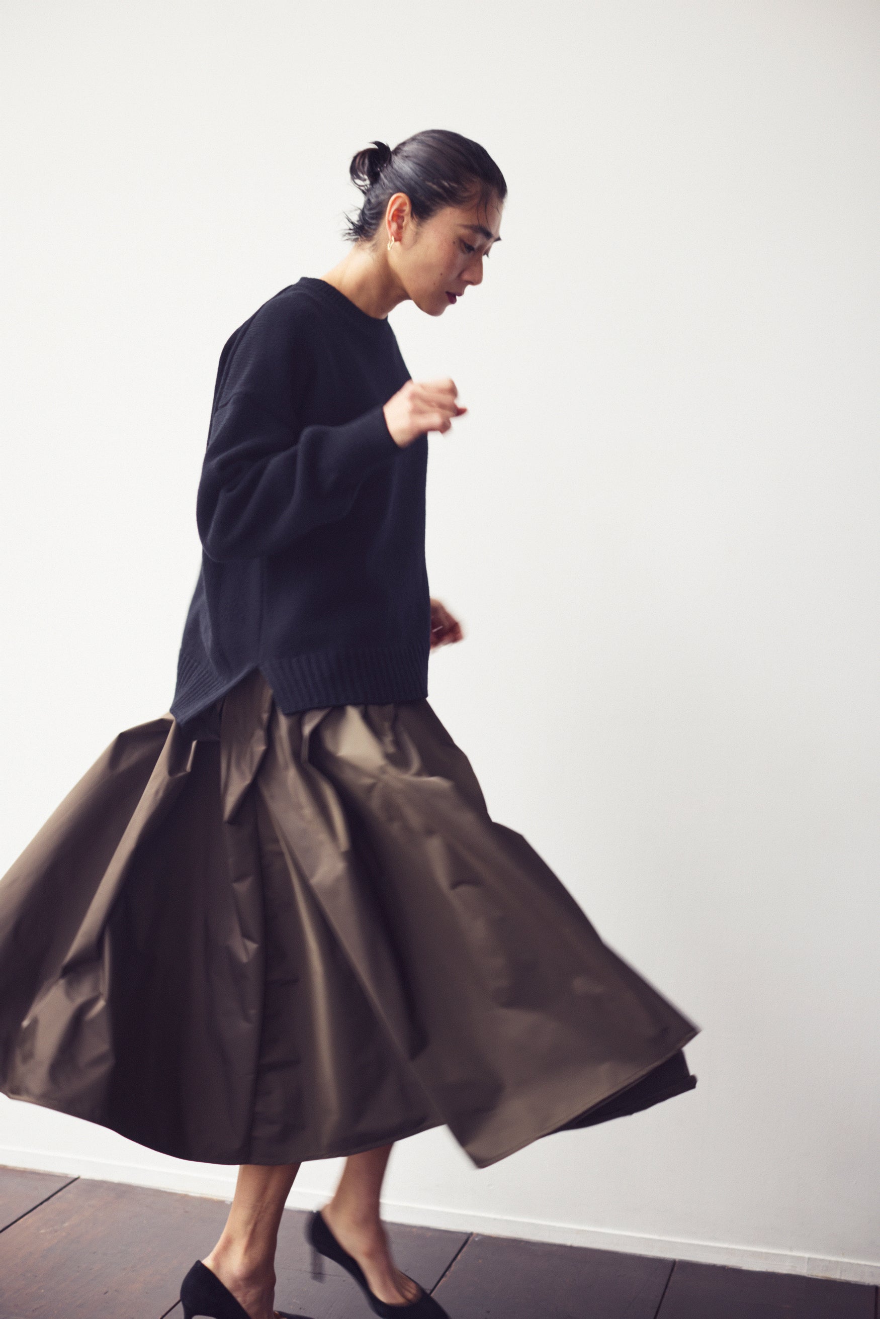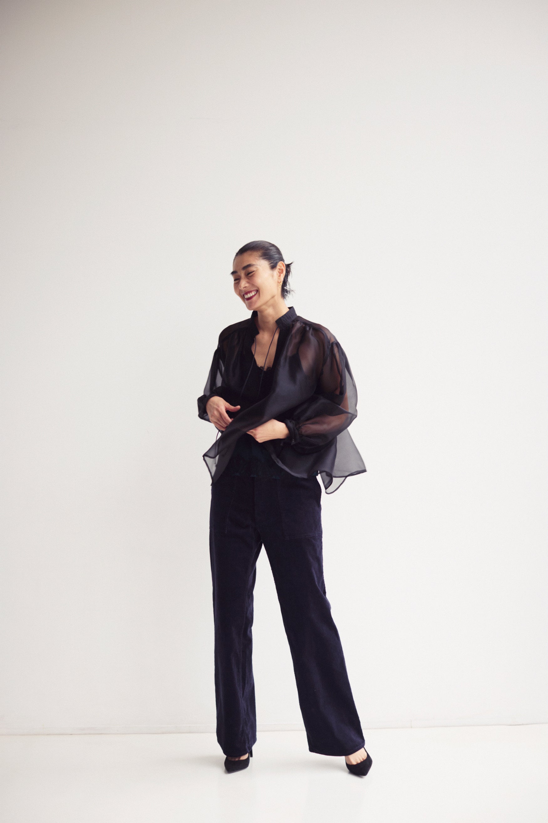 2回目になる、「NO.b」のコレクション。Naokoの“N“とOkusaの“O”、そして“b”は、black。そう、今年は黒のラインナップです。個人的な話で恐縮ですが、私は黒がずっと苦手でした。強く個性的で、ずっと似合わないと思っていたんです。ただし、ある時、素材によってキャラクターを変える、とても饒舌な色だと分かってから、1番好きな色になりました。ウールの天真爛漫な黒、シルクのミステリアスな黒、ジャージーの自由な黒。様々な黒を、ぜひご覧ください。もちろん! 黒に似合う色、黒の着こなしの次の日に着たい色も揃っています。