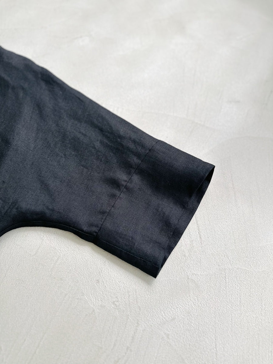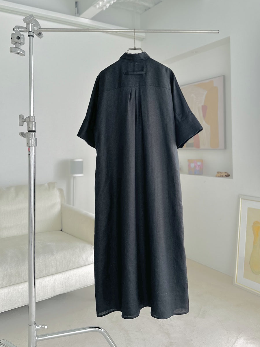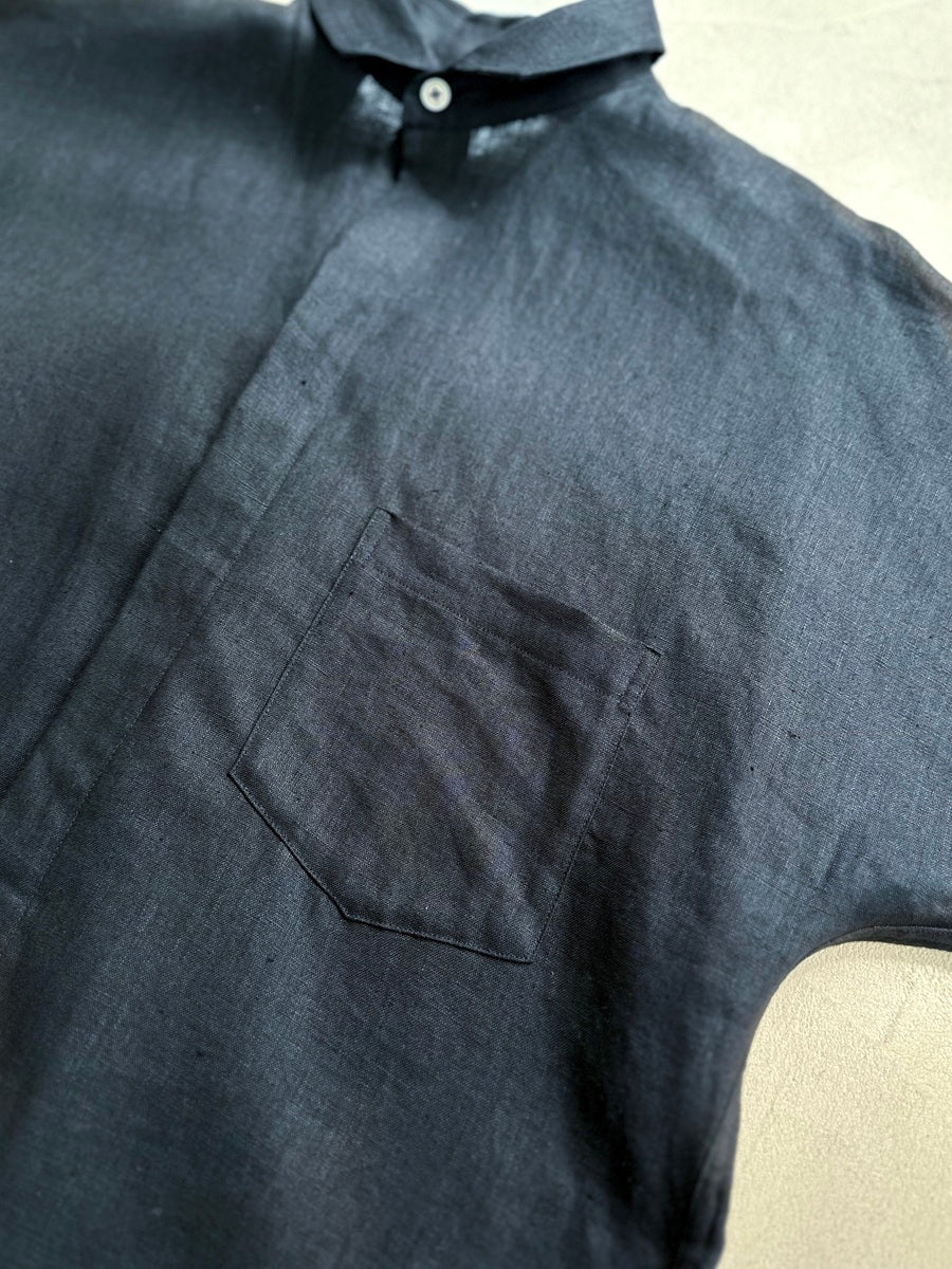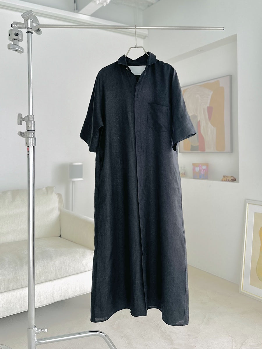 シャツやコートなどさまざまな名品があるなか、今回はこれからの季節に着たい、半袖のシャツワンピースをセレクト。AMARC別注として、素材をリネンに変更しました。緻密に計算されたパターンと贅沢なドレープが、身体のラインをきれいに見せてくれる珠玉の一枚。