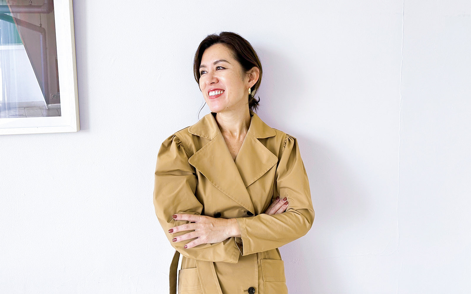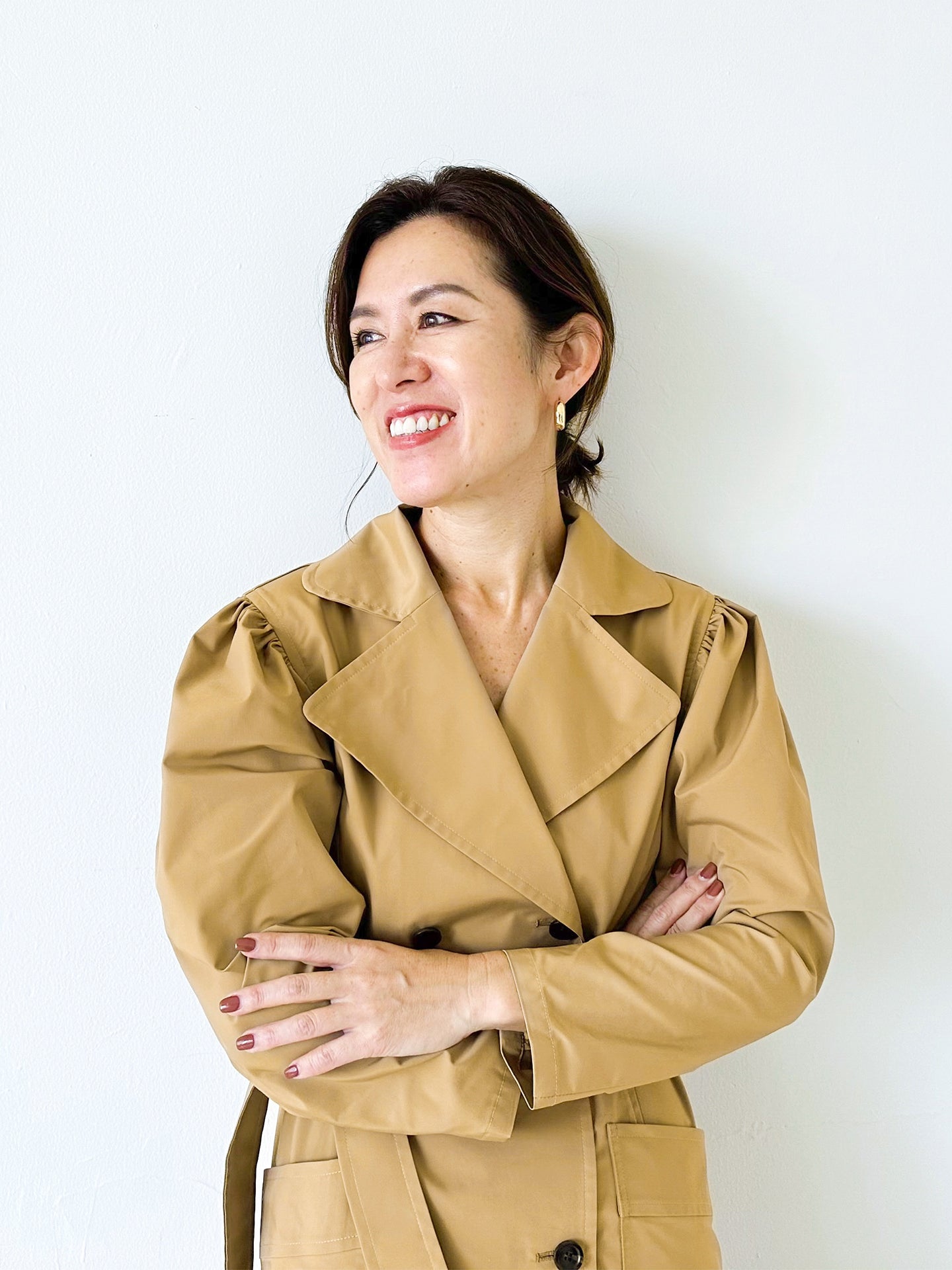 トレンチコートが持つ端正な印象はそのままに、フェミニンさ、華やぎ、知的さ、清潔感――混在するムードを楽しむことができる1着です。