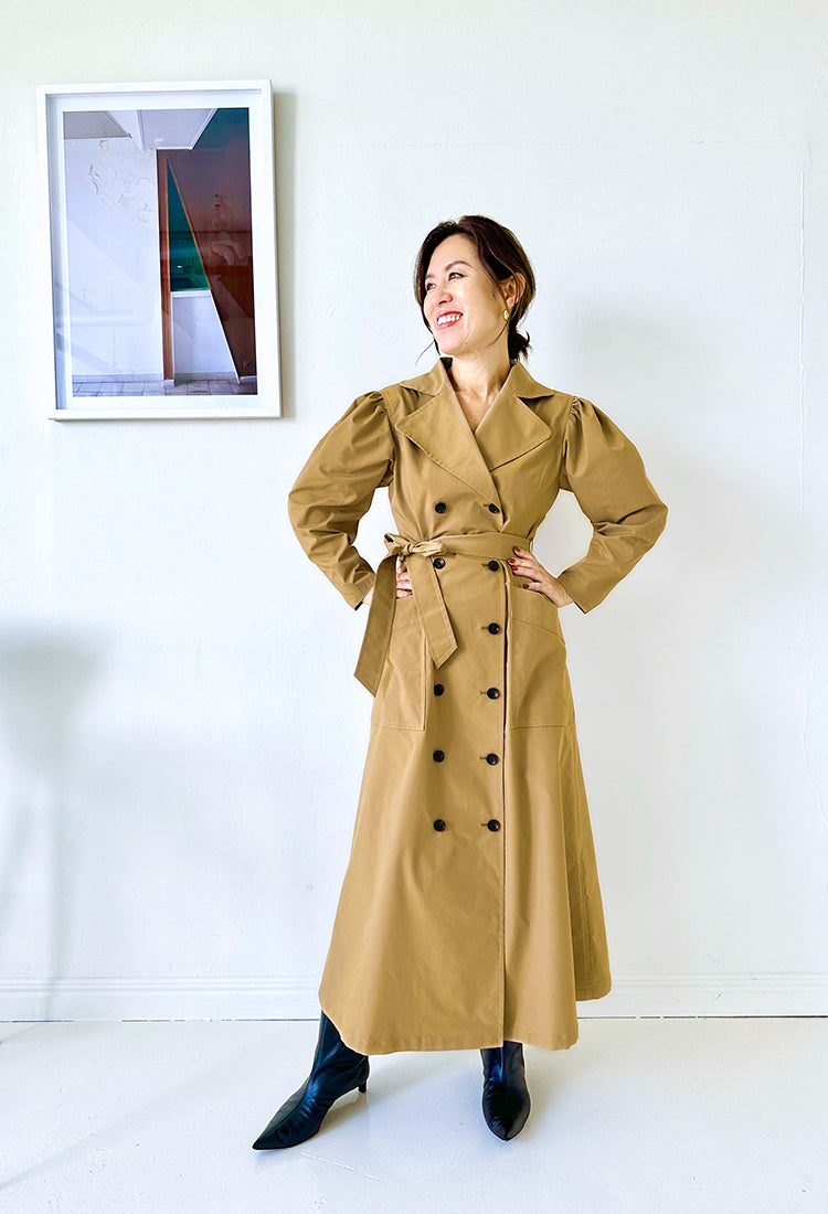 ワードローブの定番ともいえるトレンチコートをイメージソースに、AMARCらしくブラッシュアップしたワンピースが完成しました!