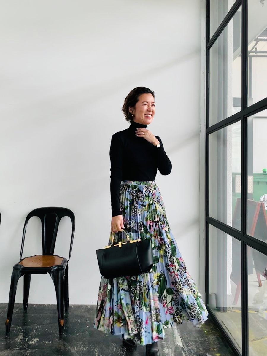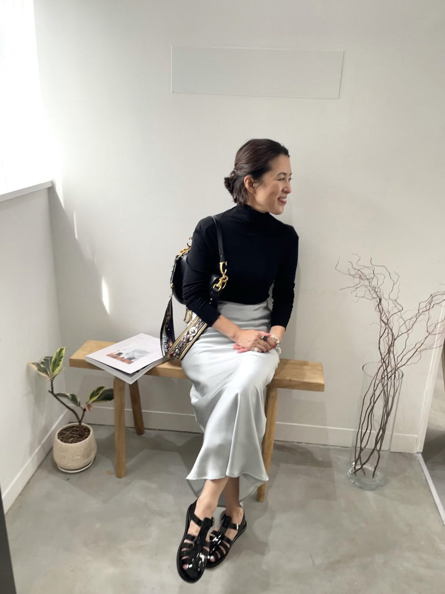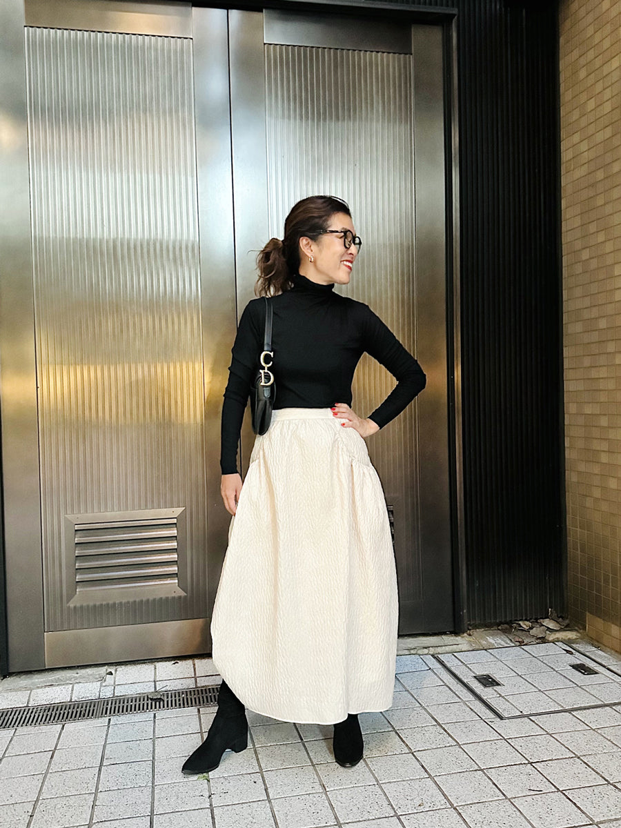 そして、「AMARCオリジナル ジャガードギャザースカート」のブラックとベージュも数量限定で再販いたします。タートルネックカットソーと一緒にコーディネートを楽しむことができますので、気になる方はお早めにチェックしてくださいね。