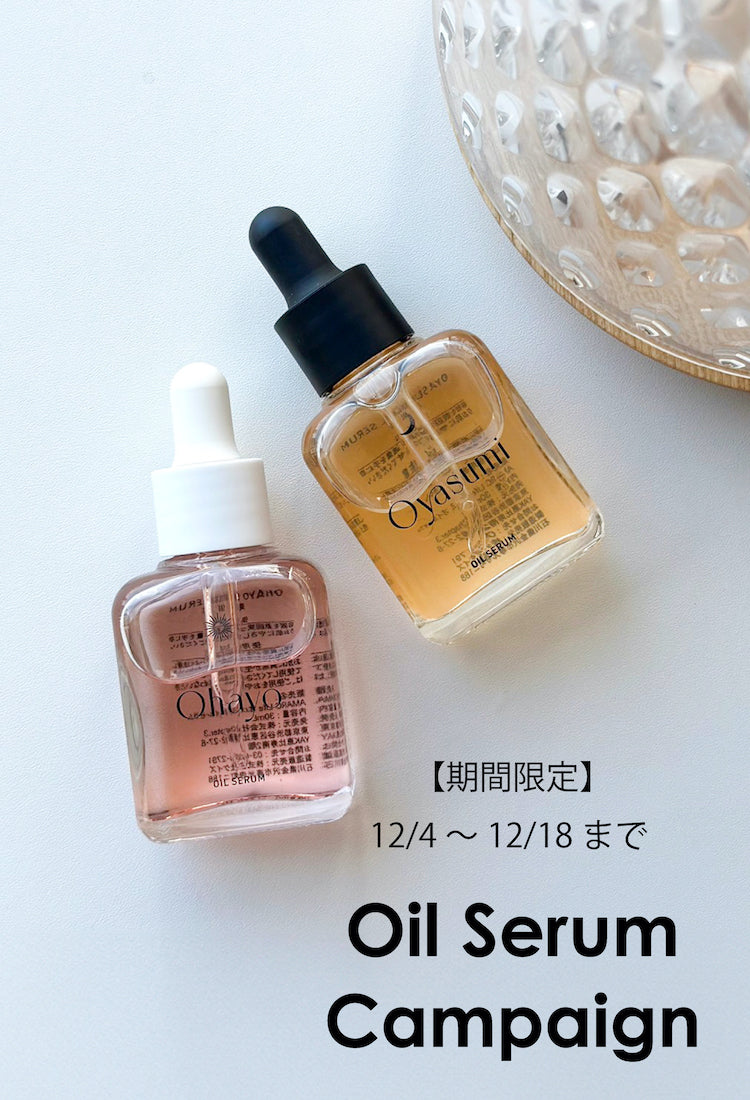 このオイルセラムの魅力、そして使用したことによる肌の変化をもっと多くの人に感じてもらいたい、という想いから、期間限定のスペシャルキャンペーンを開催! 期間中は、「Ohayo,Oyasumi Oil Serum Set」を、限定価格にてお求めいただけます。