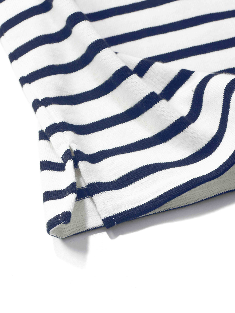 計算されたピッチ幅、オーガニックコットンならではの肌心地、空気感のあるシルエット……。「アルモリュクス」のしなやかで知性あるバスクシャツの魅力はそのままに、大人の新定番になる一着へとアップデートしたのがこちら。