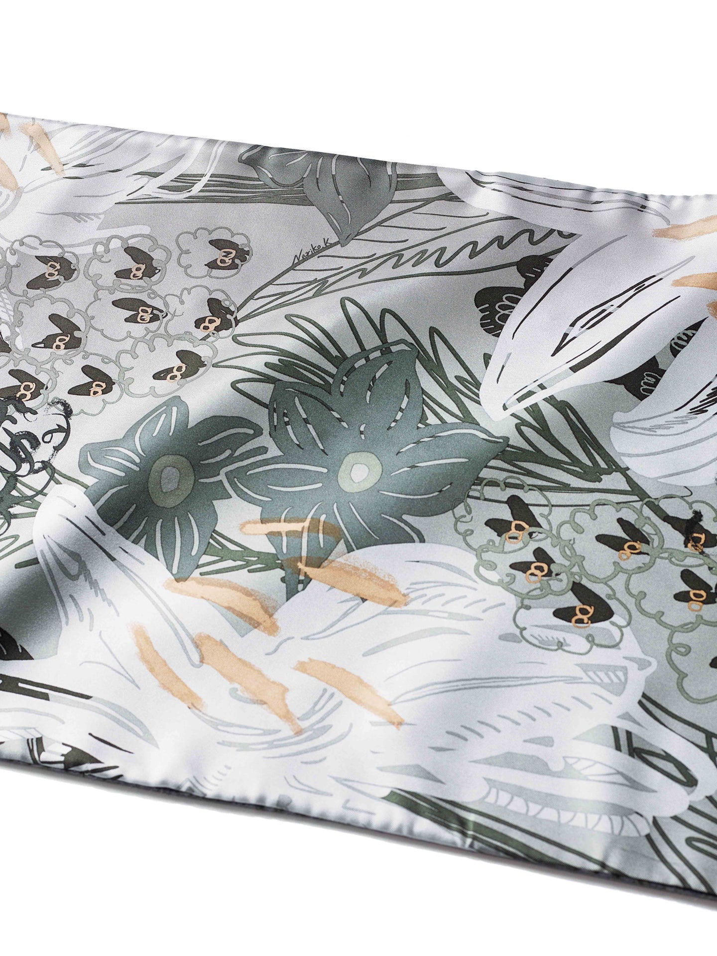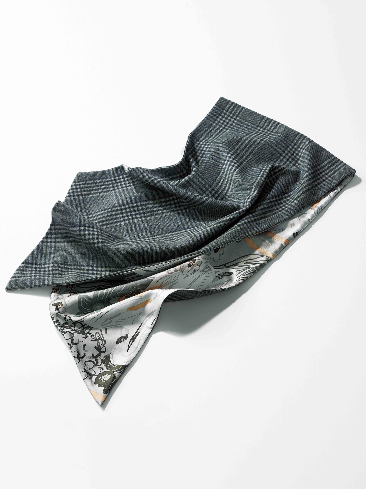 時にエレガントに、時にマスキュリンに。その日のスタイルや気分に合わせて纏う雰囲気をいとも簡単に変えられる、それがこのストールの醍味。「マニプリ」の真骨頂でもある手捺染(てなせん)によりダイナミックに表現されたフラワー柄のシルク生地に、質感もムードもあえてずらしたウール100%のグレンチェック柄を組み合わせたことで、巻いたときの表情に奥行きが増します。
