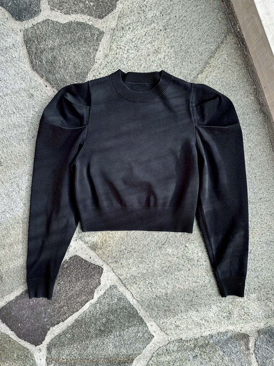 大草が“ポワンニットプルオーバー”を偏愛している理由の1つが、ボーイッシュなディテールと、フェミニンなディテールがうまく混在している、という点。詰まった襟元や細めの袖、というティーシャツライクな要素が、パフっとした華やかな袖を際立たせています。今回はドライタッチな素材を選ぶことにより、さらにカジュアル感をプラスし、普段のワードローブに加えやすく、程よくモードを感じるデザインに仕上げました。