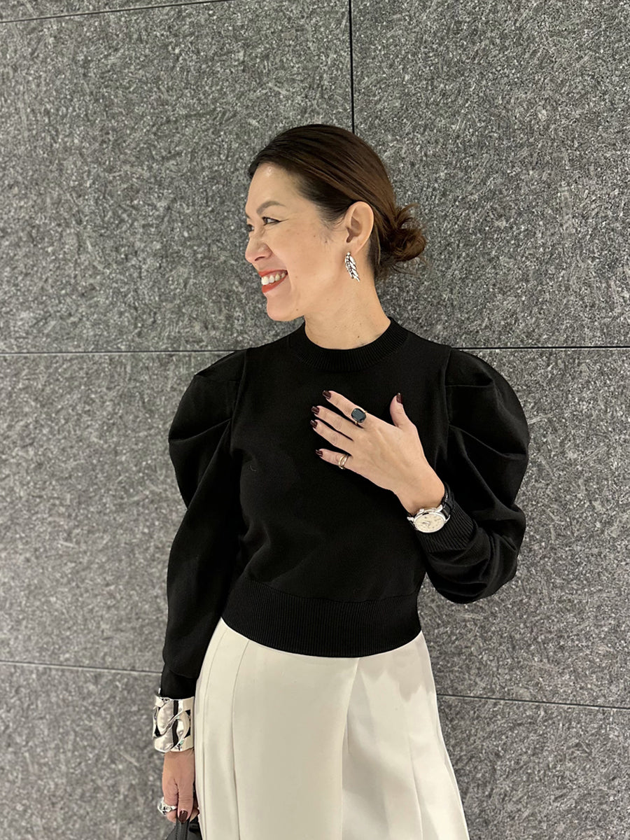 サイズ展開は、通常のCygneのサイズレンジと同じ「Sサイズ」と、より多くの方に楽しんでいただけるよう「Mサイズ」を作りました。大人だからこそモードを取り入れてコーディネートにスピード感をもたらすことが大切。モードなアイテムにチャレンジしてみたいけれど、何を購入して良いかわからない、自分には似合わないんじゃないか、という方はぜひこのニットを手に取ってみてはいかがでしょうか。いつも履いているデニムやワイドパンツ、スカートにもすっと馴染みながら、新鮮なスタイルに生まれ変わらせてくれる――そんな1着です。