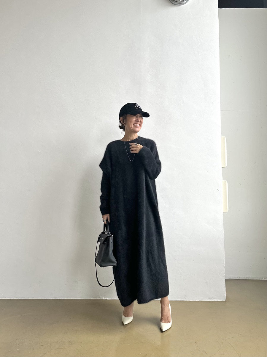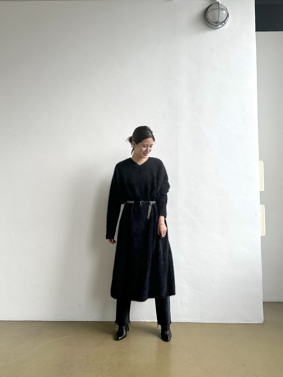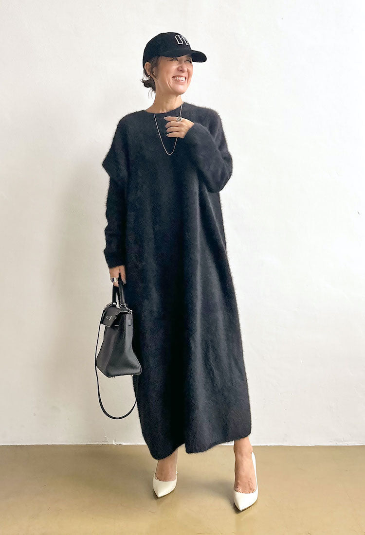 今回お届けするのは、Curensologyの2024AWの新作“フォックスカシミヤ2WAYワンピース”。AMARC別注カラーとして、ブラックをつくっていただきました。