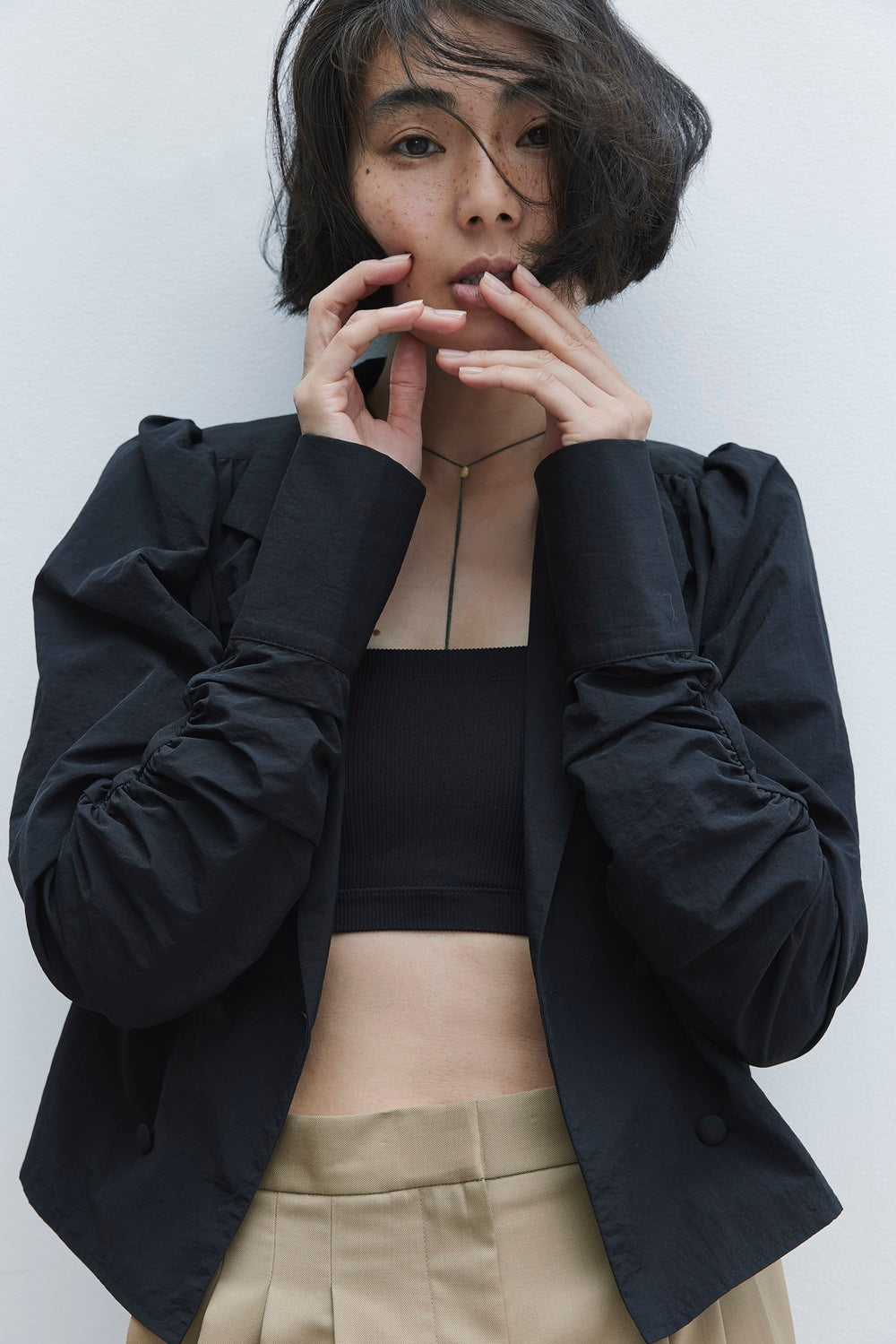 ファーストコレクションとなる今回は、「NO.b」のbasicを表現。ディレクターの大草直子がずっと好きなネイビージャケットやシャツ、ダブルフェイスのセットアップやフーディなど、ベーシックに今の気分をのせたアイテムを展開。