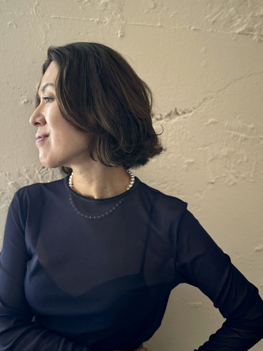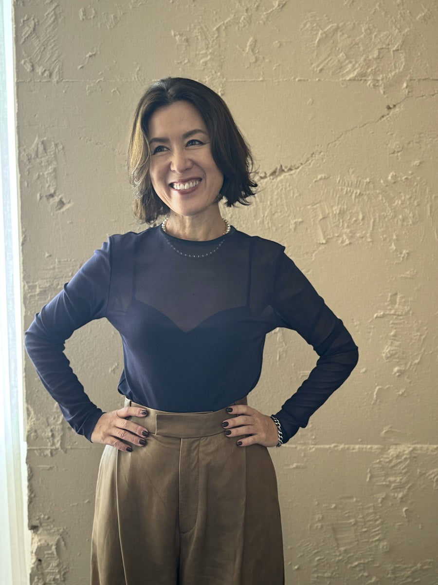 シアーなアイテムを大人でもトライしやすいよう、身体にフィットしすぎない程よいサイジングに設定。あえて、デザインはシンプルにしました。