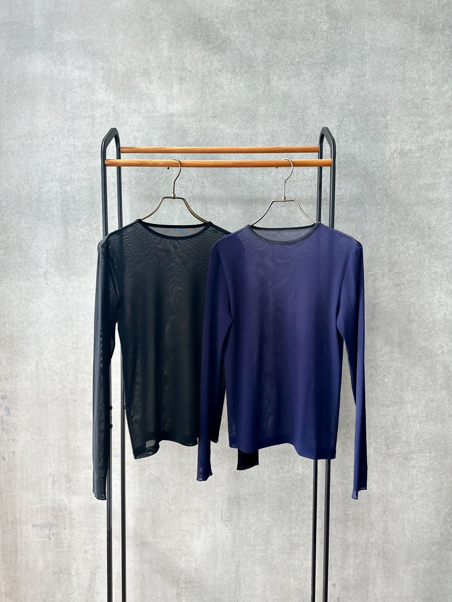季節を問わず着用できる、チュール素材のトップスが登場! 身体にフィットしすぎない程よいサイジングや、シンプルなデザイン、アクセントとして衿ぐりに配したベロア素材など、トレンドのシアーアイテムを、ヘルシーに楽しめるこだわりを詰め込みました。