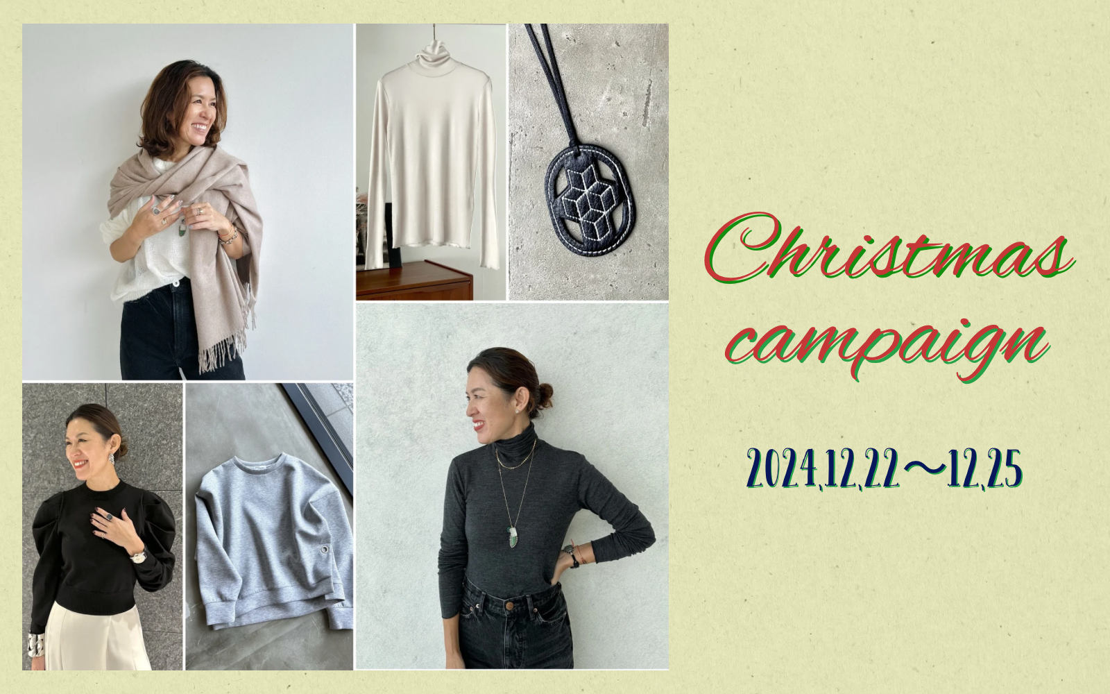 期間は、12月22日(日)から12月25日(水)までの4日間。ディスカウント価格での販売のほか、一定金額以上をご購入いただいたお客様への特別なプレゼント、一部商品の送料無料など、盛りだくさんの内容でお届けします。さらに、以前好評をいただき完売したアイテムが、キャンペーンの期間中、限定で再登場!