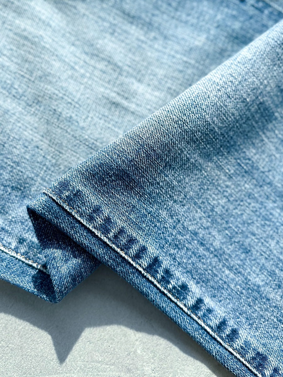 コットン100%よりも軽やかで、手にとっていただいても実際に着用しても、その履き心地の良さに驚くはずです。この1着で、暑い時期でも快適にデニムを楽しんで。
