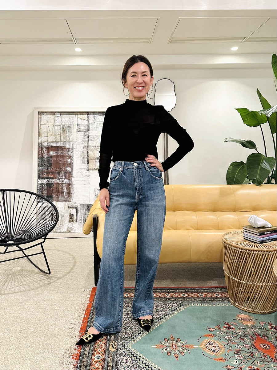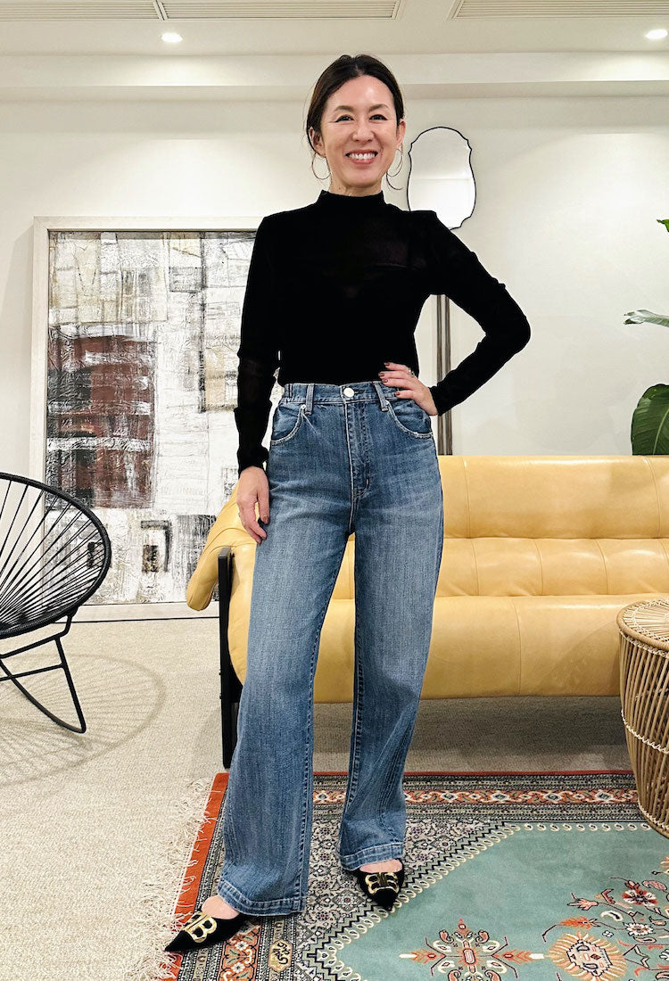※大草直子の身長は161.8cm。RED CARD TOKYOのほとんどのデニムは24サイズを選んでおり、今回も24サイズを着用しています。