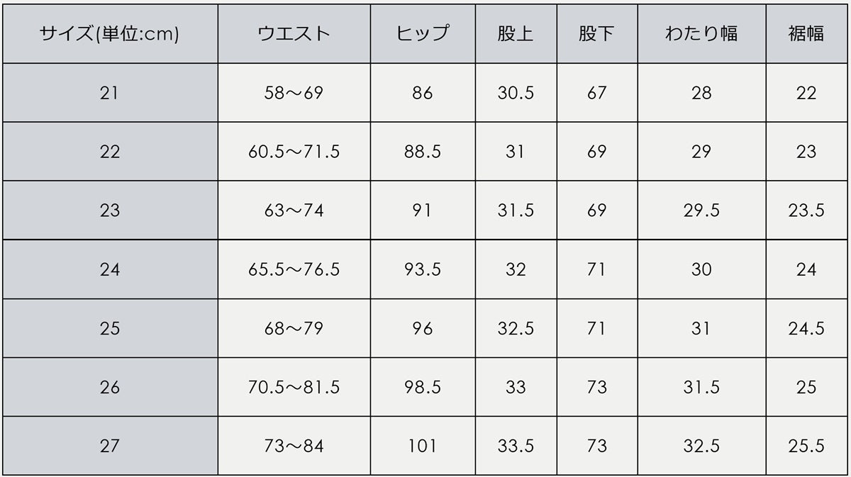 サイドゴムを想定して小さめサイズを選ぶのではなく、ジャストサイズを選ぶのがポイント。Manoaはタイトに履くシルエットではないため、サイズダウンするとキツく感じることがあります。RED CARD TOKYOのデニムをお持ちの方は、同じサイズを選んで。