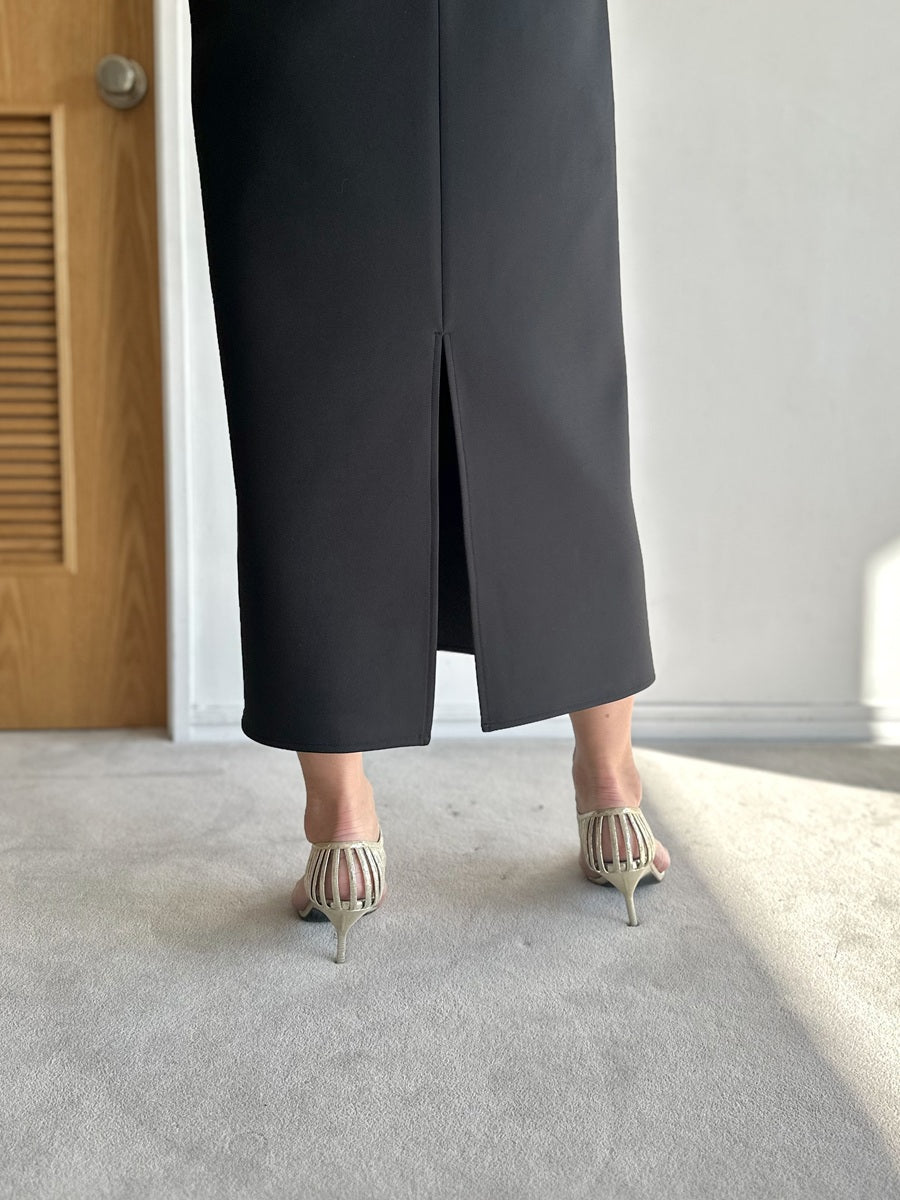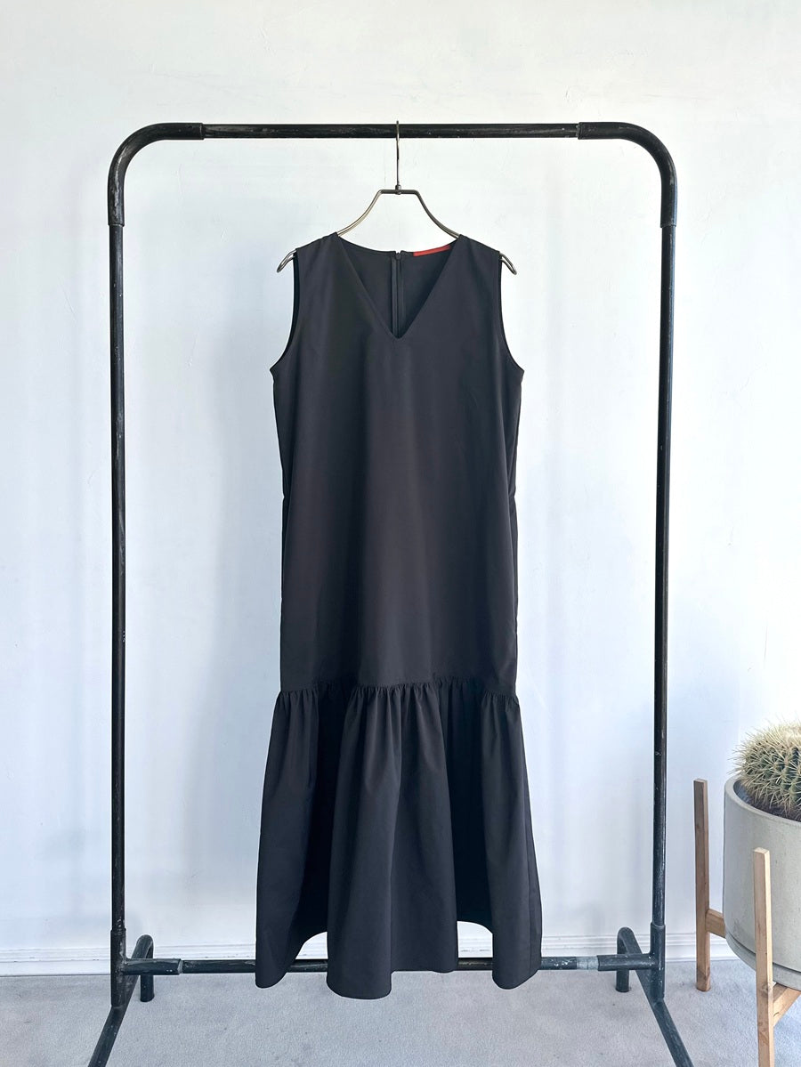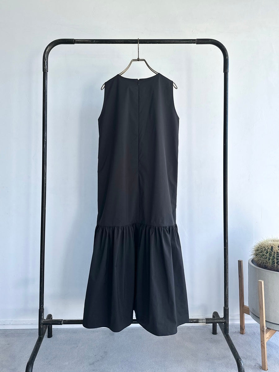 素材は「身体に張りつかず」「シワになりにくく」、「着ていて心地いい」を追求。ほのかな光沢があるので、カジュアルになりすぎないための「上品さ」も添えてくれます。今回は、以前お届けしたものよりも、少しだけハリがあるものにアップデート。ストレートなラインとティアードの部分のメリハリがより際立ちます。