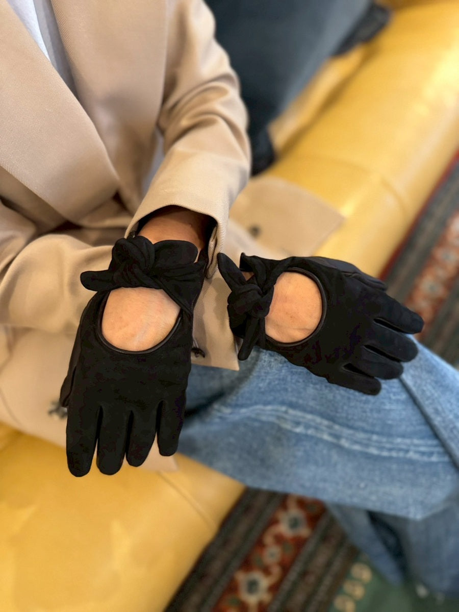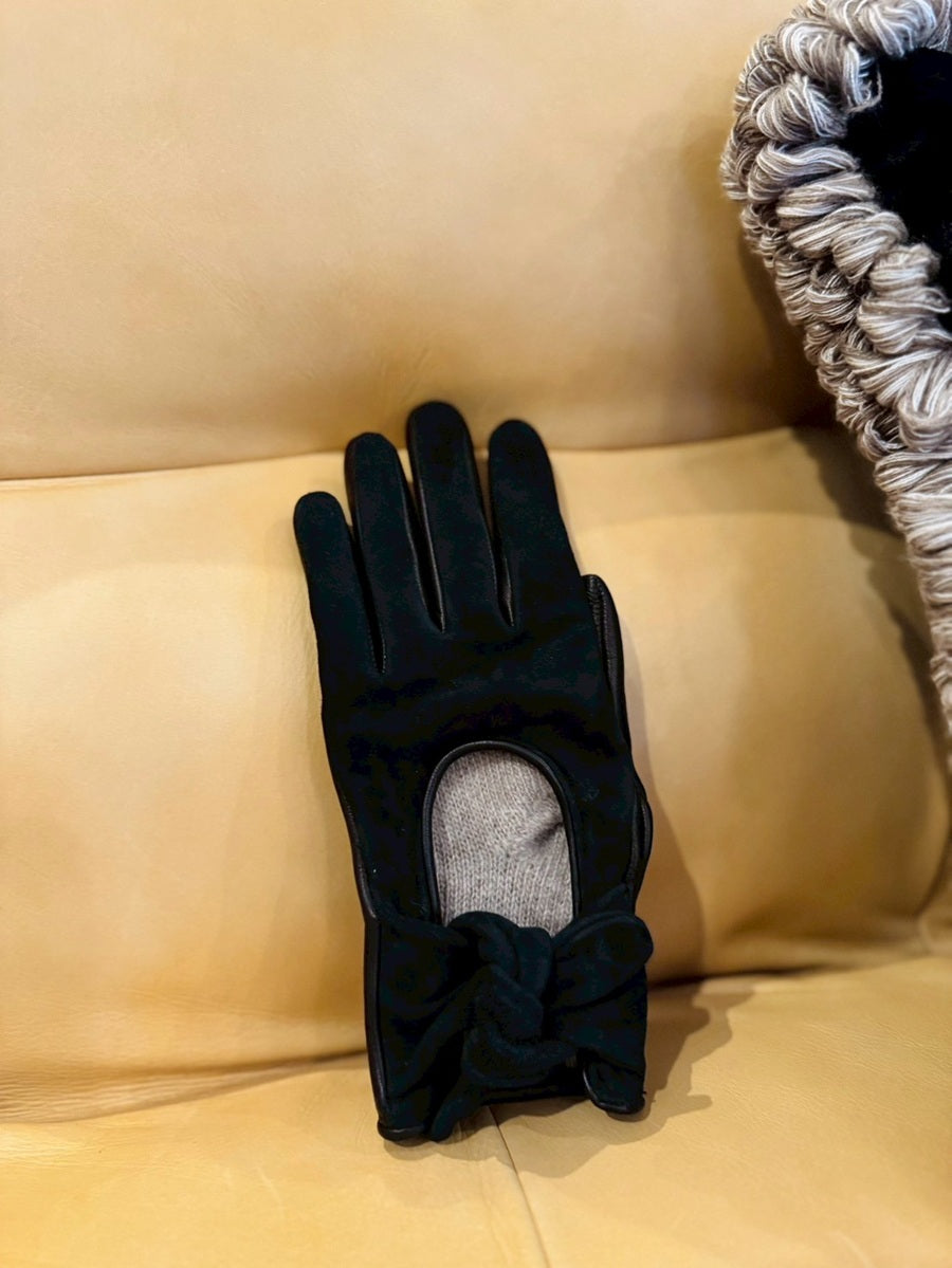 “Knotted”は、その名のとおり、手の甲にあしらわれたリボンを結ぶデザイン。冬の手元を華やかに演出し、隙間から覗く素肌からは抜けが生まれます。AMARC LIFE STOREでは、グローブの全長を5cm短くすることで、手の平がしっかりと覆われつつも、合わせるコートやニットを選ばず、手の可動域に制約が出ない長さに。