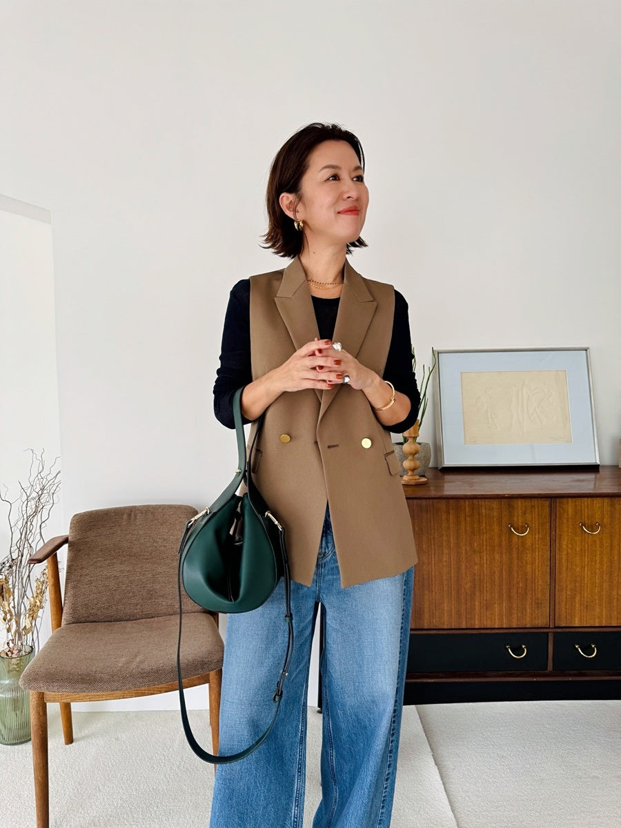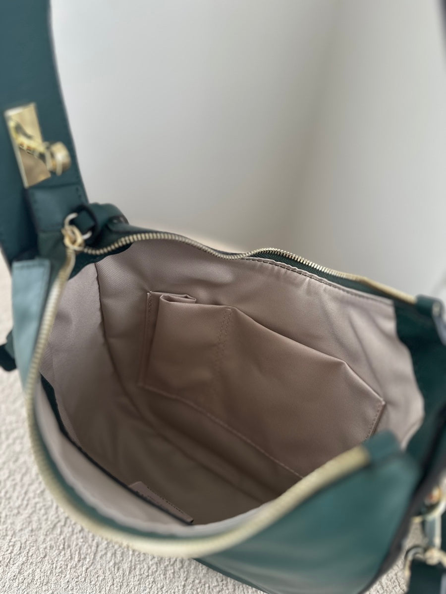 さりげなく凛とした印象を添える、サンドベージュカラーのライナーも別注ポイント。金具はゴールドをセレクトすることで、グリーンに一層の深みを加え、上品な仕上がりに。