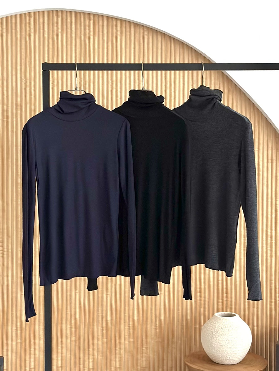 AMARCの定番アイテムでもあり、毎年、好評をいただくオリジナルのタートルネックカットソー。今回は、 発売当初からお届けしている“ブラック”に加え、昨年あっという間に完売した“チャコールグレー”が再登場。さらに新色として、“ネイビー”も展開します。