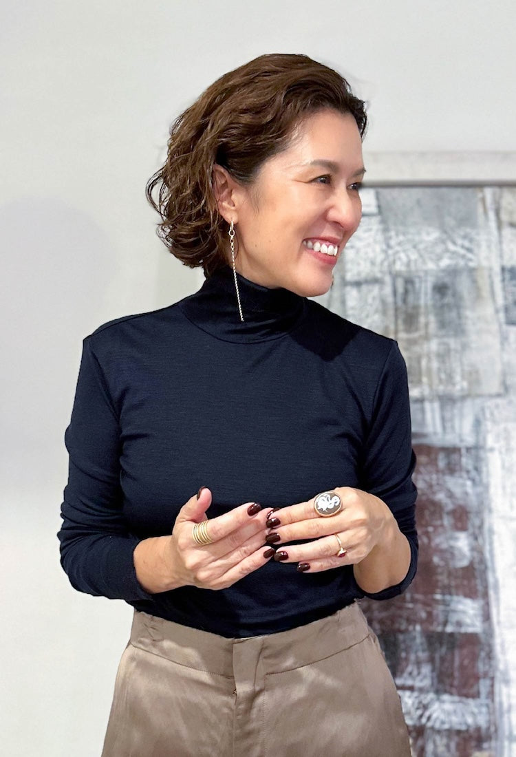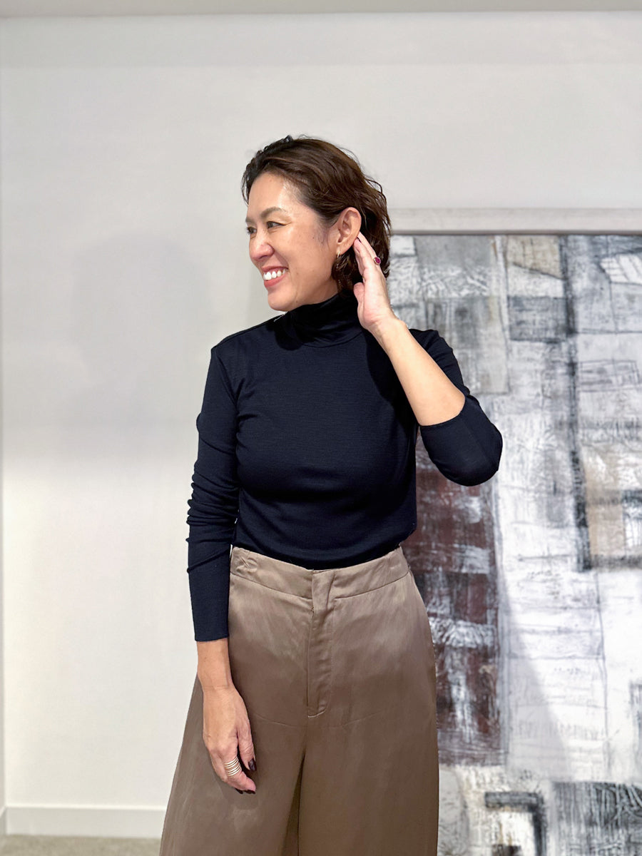 洗濯機で洗えるので、気兼ねなく着用できるのも嬉しいポイント。一枚で着るのはもちろん、ワンピースやシャツ、ジャケットのインナーなど、どんなスタイルにもマッチしてくれます。秋冬のコーディネートに困ったときはこのタートルに頼れば間違いナシ! という万能アイテムなので、AMARC編集部員も全色購入し、さらに、洗い替え用に数枚ずつ揃えるほど愛用。毎日のおしゃれをさまざまな面からサポートしてくれる、相棒のようなカットソーです。